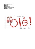 Een boekverslag over het boek Olé geschreven door Elisa van Spronsen. In het boek komen de. personages, hoofdpersonen, bijpersonen, genre, thema, titelverklaring, titelbeschrijving, recensie en plaats en ruimte aan bod
