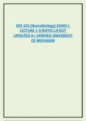 BIO 225 (Neurobiology) EXAM 1 LECTURE 1-9 NOTES LATEST UPDATED A+ VERIFIED UNIVERSITY OF MICHIGAN