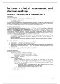 Here are my lecture notes of all lectures of the course Clinical Assessment and Decision Making (SOW-PSB3DH23E). The notes include the pictures and assignments used in the slides. With these notes, I finished this course with a 9
