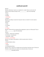 Question 1 Brad doesn’t stop by to see Angelina for a couple of days to see how she will respond. This most likely took place in the _______________ stage of the relationship.