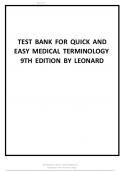 Test Bank For Quick & Easy Medical Terminology, 10th Edition, By Peggy C. Leonard All Chapters 1-15 LATEST