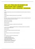 - NDT LEC PRELIMS REVIEWER 223 QUESTIONS AND CORRECT ANSWERS, 100% VERIFIED. 2025/2026. • Tentamen (uitwerkingen)