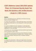 CLEET Oklahoma (Latest 2025/2026 Update) Phase I & II Unarmed Security Guard Test Bank| 250 Questions with Verified Answers | Grade A+| 100% Correct. CLEET Oklahoma (Latest 2025/2026 Update) Phase I & II Unarmed Security Guard Test Bank| 250 Questions with Verified Answers | Grade A+| 100% Correct. CLEET Oklahoma Phase I & II (Latest 2025/2026 Update) Unarmed Security Guard Test Bank| 250 Questions with Verified Answers | Grade A+| 100% Correct.