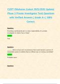 - CLEET Oklahoma Phase 3 (Latest 2025/2026 Update) Private Investigator Test| Questions with Verified Answers | Grade A+| 100% Correct. • Examen
