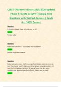 - CLEET Oklahoma Phase 4 (Latest 2025/2026 Update) Private Security Training Test| Questions with Verified Answers | Grade A+| 100% Correct. • Examen