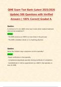 - QME Exam Test Bank (Latest 2025/2026 Update) 500 Questions with Verified Answers | 100% Correct| Graded A. • Examen