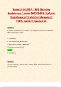 Exam 3: NURSA 1105 Nursing Assistance (Latest 2025/2026 Update) Questions with Verified Answers | 100% Correct| Graded A.