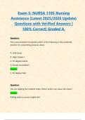 Exam 5: NURSA 1105 Nursing Assistance (Latest 2025/2026 Update) Questions with Verified Answers | 100% Correct| Graded A. Exam 5: NURSA 1105 Nursing Assistance (Latest 2025/2026 Update) Questions with Verified Answers | 100% Correct| Graded A.