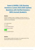 Exam 6: NURSA 1105 Nursing Assistance (Latest 2025/2026 Update) Questions with Verified Answers | 100% Correct| Graded A. Exam 6: NURSA 1105 Nursing Assistance (Latest 2025/2026 Update) Questions with Verified Answers | 100% Correct| Graded A.