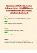 Final Exam: NURSA 1105 Nursing Assistance (Latest 2025/2026 Update) Questions with Verified Answers | 100% Correct| Graded A. Final Exam: NURSA 1105 Nursing Assistance (Latest 2025/2026 Update) Questions with Verified Answers | 100% Correct| Graded A.