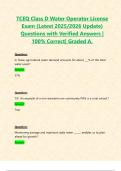 TCEQ Class D Water Operator License Exam (Latest 2025/2026 Update) Questions with Verified Answers | 100% Correct| Graded A. TCEQ Class D Water Operator License Exam (Latest 2025/2026 Update) Questions with Verified Answers | 100% Correct| Graded A.