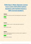 TCEQ Class C Water Operator License Exam (Latest 2025/2026 Update) Questions with Verified Answers | 100% Correct| Graded A. TCEQ Class C Water Operator License Exam (Latest 2025/2026 Update) Questions with Verified Answers | 100% Correct| Graded A.