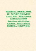 PORTAGE LEARNING NURS 231 PATHOPHYSIOLOGY (Latest 2025 / 2026 Update) All Modules EXAM Questions with Verified Answers | 100% Correct| GRADED A+ SOLUTIONS.