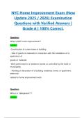 NYC Home Improvement Exam (New Update 2025 / 2026) Examination Questions with Verified Answers | Grade A | 100% Correct.