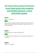 NY Home Improvement Contractor Exam Study guide with complete and Verified Solutions | Latest 2025/2026 Update. NY Home Improvement Contractor Exam Study guide with complete and Verified Solutions | Latest 2025/2026 Update.