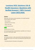 Louisiana XCEL Solutions Life & Health Insurance | Questions with Verified Answers | 100% Correct| Latest 2025/2026. Louisiana XCEL Solutions Life & Health Insurance | Questions with Verified Answers | 100% Correct| Latest 2025/2026.