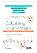 This is the complete Test Bank for Calculating Drug Dosages: A Patient-Safe Approach to Nursing and Math, 2nd Edition by Sandra Luz Martinez de Castillo, covering Chapters 1–22. It includes multiple-choice, true/false, and calculation-based questions with verified answers, designed to help students master safe and accurate medication dosage calculations. Perfect for nursing students and educators, this resource supports learning in pharmacology, dosage calculation, and safe drug administration...
