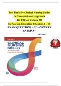 Test Bank for Clinical Nursing Skills: A Concept-Based Approach 4th Edition Volume 3 by Pearson Education Chapters 1 – 16 EXAM QUESTIONS AND ANSWERS RATED A+