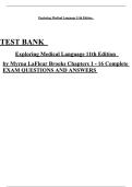 TEST BANK Exploring Medical Language 11th Edition by Myrna LaFleur Brooks Chapters 1 - 16 Complete EXAM QUESTIONS AND ANSWERS