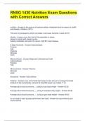 RNSG 1430 Nutrition Exam Questions with Correct Answers