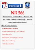 - NR 566 Final Exam: Questions & Answers( 2026-2027 Update) Advanced Pharmacology - Care of the Family | Chamberlain University • Exam (elaborations)