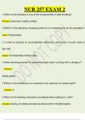 This document provides an in-depth set of practice exam questions and verified answers for NUR 257 Exam 2, with a strong focus on hunting skills, firearm safety, and shooting fundamentals as taught within the course curriculum. It thoroughly covers essential topics such as safe firearm handling, fundamentals of marksmanship, correct shooting positions (including prone and standing), shotgun versus rifle use, sighting techniques (open and aperture sights), and external factors affecting bullet tr...