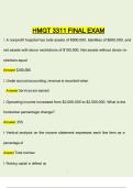 This document is a comprehensive and fully solved final exam study guide for HMGT 3311, designed to align closely with the actual final examination content. It includes verified exam-style questions and correct answers covering essential healthcare financial management concepts, with a strong focus on practical calculation-based problem solving and financial decision-making in healthcare organizations.