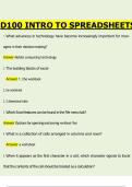 D100 – Introduction to Spreadsheets | Excel Fundamentals, Tables, Formulas, PivotTables, Charts & Data Analysis Concepts |2024/2025| Complete Course Questions and Answers Study Guide