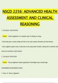 This document provides a structured and comprehensive summary of NSGD 2256: Advanced Health Assessment and Clinical Reasoning, focusing on the development and application of clinical judgment in nursing practice. It covers foundational concepts such as clinical judgment definitions, scope, attributes, and its relationship with evidence-based practice, standards-based approaches, and the nursing process.