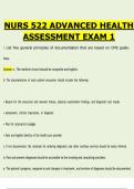 This document is a highly detailed and comprehensive exam preparation resource for NURS 522: Advanced Health Assessment – Exam 1. It contains an extensive collection of exam-style questions with correct answers covering essential foundational topics such as CMS documentation guidelines, evaluation and management (E/M) services, CPT and ICD-10 coding, HIPAA regulations, protected health information (PHI), EMR/EHR systems, and legal aspects of medical documentation.