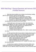 HESI Med Surg 1 Practice Questions and Answers 2023 | 100% Verified Answers