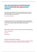 Docworld On this page, you find all documents, package deals, and flashcards offered by seller DocWorld. 829 Documents 0 Flashcards 2 Package deal Community 0 Followers 0 Following 6 Reviews received 5 0 0 1 0 6 months ago • edwardvaldez VATI RN COMPREHENSIVE PREDICTOR RETAKE EXAM 2025 |ACTUAL 180 Qs & As| (NGN QUESTIONS INCLUDED)/ALREADY GRADED A+|LATEST UPDATE 2025 SPRING 8 months ago • shontellarmstrong PA EFDA BOARD EXAM|ACTUAL 180QS&As|LATEST UPDATE|GRADED A+ 1 year ago • AllExamsAide 2025/2026 NCLEX RN EXAM TESTBANK (3 LATEST VERSIONS|2500+Qs &As WITH RATIONALES|BEST REVIEION MATERIAL FOR NCLEX RN EXAM 2025|A+ GRADE ASSURED 1 year ago • AllExamsAide NCLEX RN 2025/2026 NCLEX RN (NEXT GENERATION FORMAT) EXAM TESTBANK|ACTUAL 860+Qs&As WITH RATIONALES|ALREADY GRADED A+|LATEST UPDATE 2025 SPRING 1 year ago • AllExamsAide TESTBANK -PHARMACOTHERAPY: A PATHOPHYSIOLOGIC APPROACH 10TH EDITION (DIPIRO ET.AL 2016) ALL CHAPTERS 1-144 COVERED + Show more reviews 832 items Everything Documents Flashcards Package deal Best sold Newest Rating 2025-2026 PTA BOARD EXAM|PHYSICAL THERAPIST ASSISTANT (PTA) BOARD EXAM|ACTUAL 400+Qs&As|ALREADY GRADED A+ (0) $23.49 0x sold PTA BOARD EXAM|PHYSICAL THERAPIST ASSISTANT (PTA) BOARD EXAM|ACTUAL 400+Qs&As|ALREADY GRADED A+ i x Exam (elaborations) • 192 pages • by DocWorld • uploaded 2025 Quick View i x PTA BOARD • PTA BOARD PAEA PEDIATRICS EOR EXAM 2025 (300Qs&As) ACTUAL EXAM|NEW UPDATE SUMMER 2025-2026 (0) $20.49 0x sold PAEA PEDIATRICS EOR EXAM 2025 (300Qs&As) ACTUAL EXAM|NEW UPDATE SUMMER i x Exam (elaborations) • 101 pages • by DocWorld • uploaded 2025 Quick View i x PAEA PEDIATRICS EOR • PAEA PEDIATRICS EOR RAMP CERTIFICATION EXAM 2025|ACTUAL QUESTIONS AND ANSWERS|GRADED A+ (0) $19.49 0x sold RAMP CERTIFICATION EXAM 2025|ACTUAL QUESTIONS AND ANSWERS|GRADED A+ i x Exam (elaborations) • 14 pages • by DocWorld • uploaded 2025 Quick View i x Ramp Certification • Ramp Certification 2025 NR603 CEA FINAL EXAM|2025-2026|REAL 150Qs&As|ALREADY GRADED A+ (0) $22.49 1x sold 2025 NR603 CEA FINAL EXAM||REAL 150Qs&As|ALREADY GRADED A+ i x Exam (elaborations) • 54 pages • by DocWorld • uploaded 2025 Quick View i x NR603 CEA • NR603 CEA AIC 300 - CLAIMS IN AN EVOLVING WORLD EXAM 2025|ACTUAL 105Qs&As WITH RATIONALES|A+GRADE (0) $20.49 0x sold AIC 300 - CLAIMS IN AN EVOLVING WORLD EXAM 2025|ACTUAL 105Qs&As WITH RATIONALES|A+GRADE i x Exam (elaborations) • 61 pages • by DocWorld • uploaded 2025 Quick View i x AIC 300 - CLAIMS IN AN EVOLVING WORLD • AIC 300 - CLAIMS IN AN EVOLVING WORLD 2025-2026 ABRET-EEG EXAM |REAL 280 QUESTIONS AND ANSWERS|LATEST UPDATE |100% VERIFIED (0) $20.49 0x sold ABRET-EEG EXAM |REAL 280 QUESTIONS AND ANSWERS|LATEST UPDATE |100% VERIFIED i x Exam (elaborations) • 55 pages • by DocWorld • uploaded 2025 Quick View i x ABRET-EEG • ABRET-EEG 2025-2026 NIGHTINGALE PATHOPHYSIOLOGY FINAL EXAM|ACTUAL 300+Qs&As|ALREADY GRADED A+ (0) $23.99 0x sold NIGHTINGALE PATHOPHYSIOLOGY FINAL EXAM|ACTUAL 300+Qs&As|ALREADY GRADED A+ i x Exam (elaborations) • 74 pages • by DocWorld • uploaded 2025 Quick View i x NIGHTINGALE PATHOPHYSIOLOGY • NIGHTINGALE PATHOPHYSIOLOGY 2025-2026 NURS 618 ADVANCED PATHOPHYSIOLOGY EXAM 3|50 QUESTIONS AND ANSWERS|ALREADY GRADED A+ (0) $20.49 0x sold NURS 618 ADVANCED PATHOPHYSIOLOGY EXAM 3|50 QUESTIONS AND ANSWERS|ALREADY GRADED A+ i x Exam (elaborations) • 30 pages • by DocWorld • uploaded 2025 Quick View i x NURS 618 ADVANCED PATHOPHYSIOLOGY • NURS 618 ADVANCED PATHOPHYSIOLOGY 2025-2026 CNL (CLINICAL NURSE LEADER) CERTIFICATION TESTBANK|ACTUAL 330Qs&As|NEW UPDATE SUMMER 2025|A+GRADE (0) $20.49 0x sold CNL (CLINICAL NURSE LEADER) CERTIFICATION TESTBANK|ACTUAL 330Qs&As|NEW UPDATE SUMMER 2025|A+GRADE i x Exam (elaborations) • 153 pages • by DocWorld • uploaded 2025 Quick View i x CNL CERTIFICATION • CNL CERTIFICATION 2025 ATI MENTAL HEALTH PROCTORED EXAM|ACTUAL 80QUESTIONS AND ANSWERS|A+GRADE (0) $20.49 0x sold 2025 ATI MENTAL HEALTH PROCTORED EXAM|ACTUAL 80QUESTIONS AND ANSWERS|A+GRADE i x Exam (elaborations) • 33 pages • by DocWorld • uploaded 2025 Quick View i x 2025 ATI MENTAL HEALTH • 2025 ATI MENTAL HEALTH 1 ... 11 12 13 ...