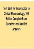Comprehensive Test Bank Introduction to Clinical Pharmacology 10th Edition updated 2025/ 2026 with solution. This verified resource includes complete exam-style questions covering drug classifications, mechanisms of action, therapeutic uses, and safe administration practices. Ideal for nursing and healthcare students aiming to master clinical pharmacology concepts, improve medication calculation skills, and excel in exams and practical assessments.