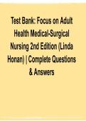 Comprehensive Focus on Adult Health Medical-Surgical Nursing 2nd Edition Test Bank by Linda Honan updated 2025/ 2026 with solution. This complete resource provides practice questions covering adult health nursing, medical-surgical interventions, patient care management, and critical thinking. Ideal for nursing students and professionals seeking to master medical-surgical concepts, improve clinical skills, and excel in exams and practical assessments.