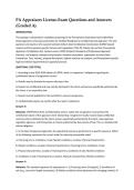 Document contains comprehensive exam-style questions and clear answers designed to prepare students for the Pennsylvania Appraisers License Exam. It covers key appraisal principles, legal requirements, valuation methods, and exam-relevant concepts commonly tested on the PA appraiser licensing assessment. The material is graded A, making it suitable as a reliable study aid and final review resource for certification candidates.