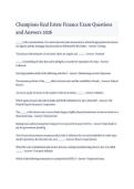 This document provides a structured collection of exam-focused questions and detailed answers for the Champions Real Estate Finance exam. It covers essential finance topics such as mortgage lending, interest calculations, loan types, financial instruments, and real estate investment principles relevant for the 2026 exam. The material is suitable for exam preparation, revision, and self-testing for students and professionals following the Champions real estate curriculum.