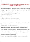 This document provides a complete set of Adult Health III Exam 3 study questions paired with A+ graded answers for the 2025/2026 academic year. It covers complex medical–surgical nursing concepts, priority-setting scenarios, pathophysiology, interventions, and clinical judgment topics emphasized in the third exam. The material is organized to support efficient studying, deep understanding, and strong alignment with advanced Adult Health III course expectations.