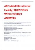 ARF (Adult Residential Facility) QUESTIONS WITH CORRECT ANSWERS 100%