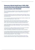 With a joint venture, one inve... i x Exam (elaborations) • 68 pages • by GOLDENHEART • uploaded 2025 Quick View i x CA Real Estate Finance • CA Real Estate Finance Rasmussen Mental Health Exam 2 2025–2026 Accurate Real Exam 100 Questions and Verified Correct Answers JUST RELEASED (0) $15.99 0x sold Which of the following is a therapeutic communication strategy to use when working with