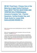 - NR 601 Final Exam | Primary Care of the Maturing & Aged Family Practicum Exam MOST TESTED QUESTIONS AND VERIFIED SOLUTIONS(Detailed Answers) Complete Test , Practice Questions, Verified Answer Key, and Study Guide for (Latest 2026 Edition)EXAM GRAD • Exam (elaborations)