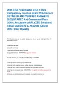 - 2026 CNA Headmaster CNA 1 State Competency Practice Exam With Correct DETAILED AND VERIFIED ANSWERS 2026(GRADED A+) Guaranteed Pass (100% Accurately ANALYZED Solutions) Actual Questions & Answers (Latest 2026 / 2027 Update) • Tentamen (uitwerkingen)