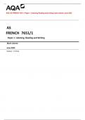 AQA AS FRENCH 7651/1 Paper 1 Listening Reading and writing mark scheme June 2023