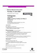 Pearson Edexcel Level 3 GCE Portuguese Advanced PAPER 3: Listening, Reading and Writing in Portuguese JUNE 2024 Question Paper & Mark Scheme