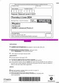 Pearson Edexcel Level 3 GCE Physics Advanced PAPER 3: General and Practical Principles in Physics JUNE 2024
