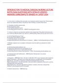 INTRODUCTION TO MEDICAL SURGICAL NURSING LECTURE NOTES EXAM QUESTIONS WITH DETAILED VERIFIED ANSWERS 100%COMPLETE GRADED A+ LATEST 2024