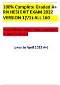 100% Complete Graded A+ RN HESI EXIT EXAM 2022 VERSION 1(V1)-ALL 160 QUESTIONS AND ANSWERS Actual Screenshots from examtaken in April 2022 A+) taken in April 2022 A+) 100% Complete Graded A+ RN HESI EXIT EXAM 2022 VERSION 1(V1)-ALL 160 QUESTIONS AND ANSWE