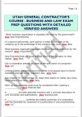 UTAH GENERAL CONTRACTOR'S COURSE - BUSINESS AND LAW EXAM PREP QUESTIONS WITH DETAILED VERIFIED ANSWERS