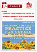 FOR EVIDENCE -BASED PRACTICE FOR NURSES: APPRAISAL AND APPLICATION OF RESEARCH 6TH EDITION BY NOLA A. SCHMIDT & JANET M. BROWN i x Book Exam (elaborations) • 125 pages • by LUCIDWISE • uploaded 2026 Quick View i x NURSING. • NURSING. Evidence-Based Practice for Nurses: Appraisal and Application of Research • Nola A. Schmidt, Janet M. Brown• ISBN 9781284226324 TEST BANK PHYSICAL EXAMINATION & HEALTH ASSESSMENT 9TH EDITION BY CAROLYN JARVIS| ALL CHAPTERS COVERED| TEST BANK 100% VERIFIED ANSWERS (0) $15.99 0x sold TEST BANK
