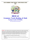 HESI A2 GRAMMAR, VOCAB, READING, & MATHS VERSION 2 GRADED A+