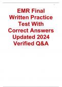 - EMR Final Written Practice Test With Correct Answers Updated 2024 Verified Q&A • Tentamen (uitwerkingen)